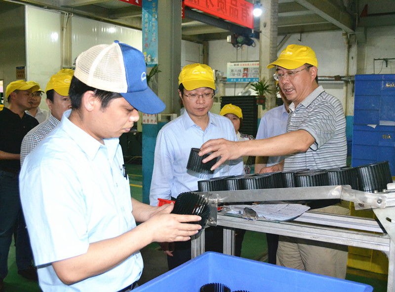 交流會(huì)結(jié)束后,在順威股份副總裁/風(fēng)葉事業(yè)部總經(jīng)理龍仕鈞先生、順德模具分公司副總經(jīng)理龐利彬女士等領(lǐng)導(dǎo)的陪同下,潘朝暉市長(zhǎng)一行饒有興致地參觀了公司的技術(shù)中心和產(chǎn)品生產(chǎn)車間。參觀期間,潘朝暉市長(zhǎng)對(duì)我公司自主研發(fā)生產(chǎn)的多項(xiàng)產(chǎn)品進(jìn)行了交流并給予了高度稱贊。
