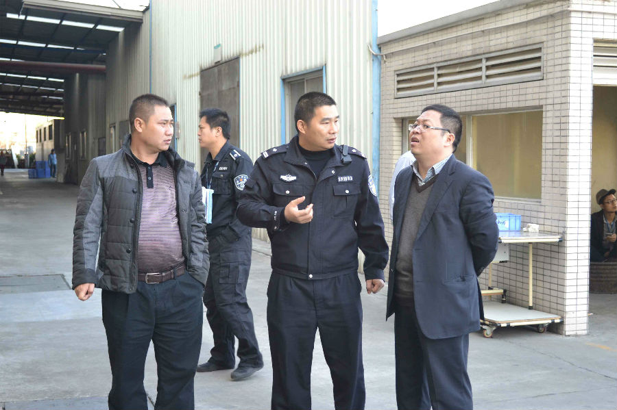 事故發(fā)生后,國(guó)家、省、市區(qū)、以及公司領(lǐng)導(dǎo)對(duì)此高度重視。在順德各鎮(zhèn)街如火如荼地全面開展安全生產(chǎn)大檢查的同時(shí), 2015年1月14日上午,順德區(qū)容桂城東派出所鄧警長(zhǎng)一行來(lái)到順威,并代表容桂公安分局開展消防安全檢查。廣東順威精密塑料股份有限公司(以下簡(jiǎn)稱“順威股份”)綜合管理中心總監(jiān)陳詠先生,順威股份順德塑料分公司總經(jīng)理景新兵先生,順德塑料分公司生產(chǎn)部副部長(zhǎng)佘琴琴女士等公司領(lǐng)導(dǎo)陪同檢查。