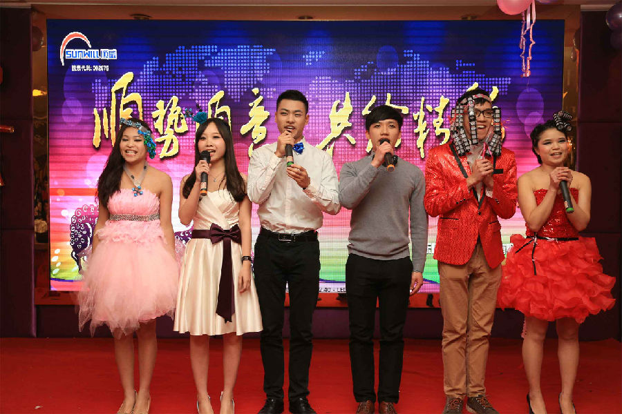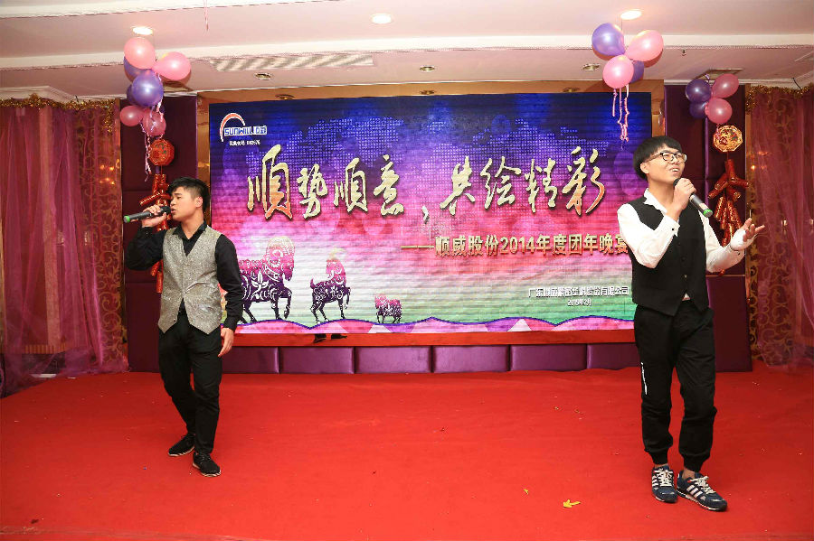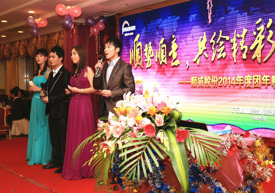順勢順威,共繪精彩。作為公司年底的重大文化盛事,順威股份廣東區(qū)域2014年團年晚宴于2015年2月8日晚在容桂源興酒家圓滿落下帷幕。精心的晚會流程安排、演員們用心的表演、主持人默契的配合、節(jié)目的創(chuàng)新突破,使得整場晚會亮點紛呈,掀起了一輪又一輪的高潮。而順威股份董事長麥仁釗先生,順威股份董事、總裁王世孝先生等公司高層領(lǐng)導振奮人心的講話,更是描繪出順威股份2015年度工作的美好藍圖,明確了公司發(fā)展的方向,極大地鼓舞了公司員工斗志,給人以無窮的信心和希望。