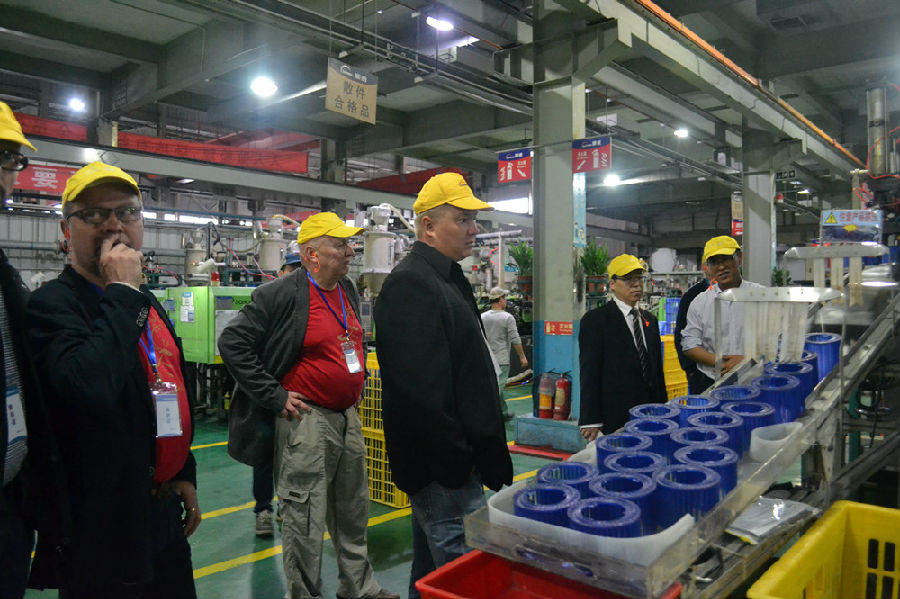 展廳結(jié)束后,一行分別到模具分公司及塑料分公司參觀。從大堂到陳列室,再到生產(chǎn)車間各個工段,客商們對公司的生產(chǎn)情況有了更深入的了解。期間對公司的高新技術(shù)及高端設(shè)備非常感興趣,不時駐足觀察并向接待同事詳細咨詢。