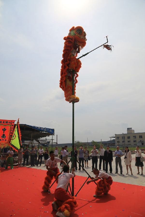 9:31分,鞭炮聲響起,車間機(jī)臺(tái)轟鳴,智能科技及三月雨公司新廠區(qū)正式“踏上征途”。隨后,鑼鼓喧天,醒獅助威。兩只醒獅以活靈活現(xiàn)的雄獅之姿表演了“板凳取財(cái)”及“高桿取財(cái)”兩個(gè)彩頭節(jié)目,為新廠區(qū)帶來(lái)生氣與喜慶。10點(diǎn)整,喬遷開工儀式圓滿結(jié)束。