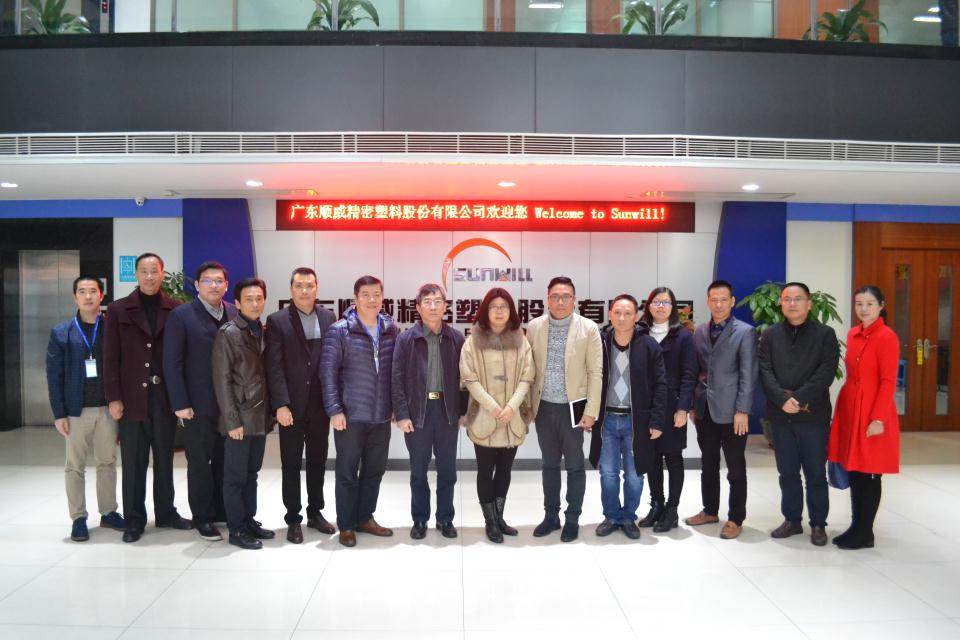 為加強(qiáng)企業(yè)交流,尋求合作契機(jī),2018年1月31日上午,廣東省塑料工業(yè)協(xié)會(huì)符岸會(huì)長、順德區(qū)塑料商會(huì)張錦標(biāo)會(huì)長一行來訪我司。集團(tuán)總裁莫綺顏女士、證券事業(yè)部副總裁李笛鳴先生、集團(tuán)人力行政中心、集團(tuán)戰(zhàn)略及商務(wù)中心總監(jiān)羅華先生、順威賽特總經(jīng)理劉寶玉先生及總裁辦高級(jí)經(jīng)理蔡惠迷女士出席熱情接待。