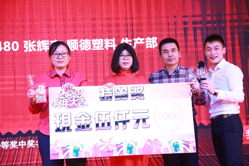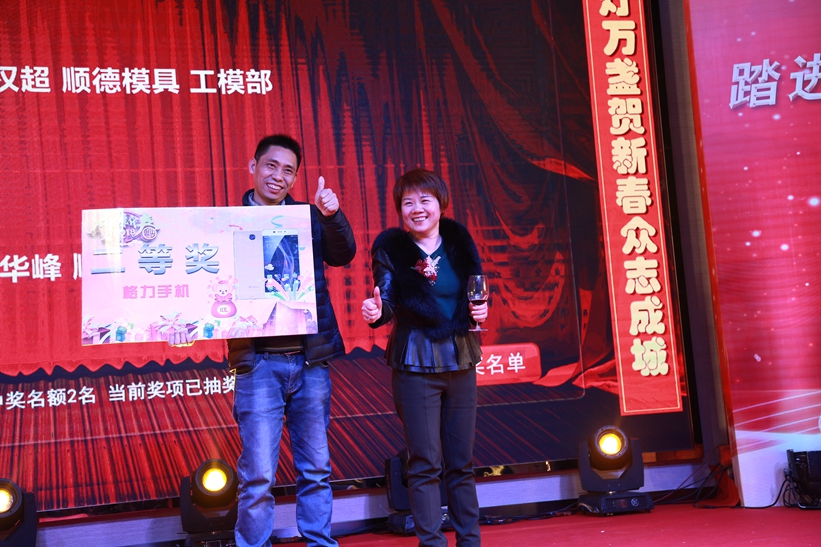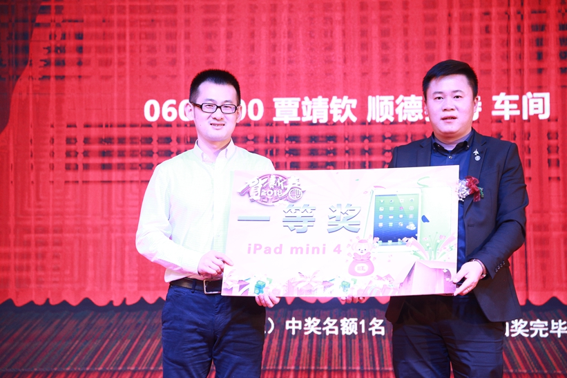 與此同時(shí),節(jié)目流程中穿插了員工最受關(guān)注的幸運(yùn)大抽獎(jiǎng)。本年度抽獎(jiǎng)獎(jiǎng)品非常豐富,包括5000元現(xiàn)金獎(jiǎng)、IPad mini 4、格力手機(jī)、華為手機(jī)、TCL智能除濕機(jī)、TCL電暖器、臺(tái)地扇、多用途電熱鍋以及商場(chǎng)購物劵等,共計(jì)1109份獎(jiǎng)品,中獎(jiǎng)率達(dá)60%。除此之外,集團(tuán)常務(wù)副總裁何偉先生、集團(tuán)組織及營運(yùn)副總裁成再育先生各贊助現(xiàn)金大獎(jiǎng)3000元,讓在場(chǎng)的同事們一次次沸騰起來。最后,總裁莫綺顏女士現(xiàn)場(chǎng)贊助了現(xiàn)金大獎(jiǎng)5000元,把晚會(huì)現(xiàn)場(chǎng)的氣氛推上了最高潮,引領(lǐng)順威人在華燈匯聚之下,歡聲不斷,激情吶喊。