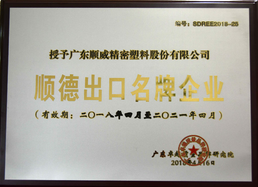 據(jù)悉,本次評(píng)選是在順德區(qū)經(jīng)科局支持下,廣東省卓越質(zhì)量品牌研究院參照省出口名牌企業(yè)認(rèn)定體系組織開(kāi)展認(rèn)定工作的。按照評(píng)選規(guī)則,最終共有35家企業(yè)成為了“2018年度順德出口名牌企業(yè)”。