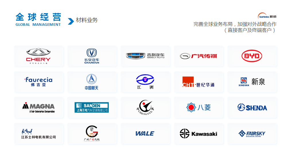 順威材料事業(yè)部目前有順德、昆山、武漢三個生產(chǎn)基地,三基地總產(chǎn)能10萬噸/年。
